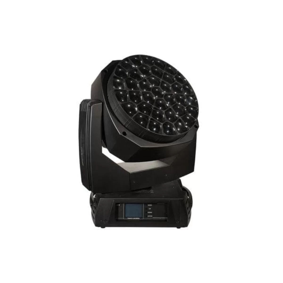 Прибор оснащен светодиодами OSRAM 37x15Вт 4 в 1 RGBW и представлен сразу в трех амплуа: вош, бим и прибор для создания графических эффектов. Угол раскрытия луча от 7° до 60 °. Индивидуальное управление светодиодами позволяет создавать невероятные динамические эффекты. Передняя линза может постоянно вращаться.