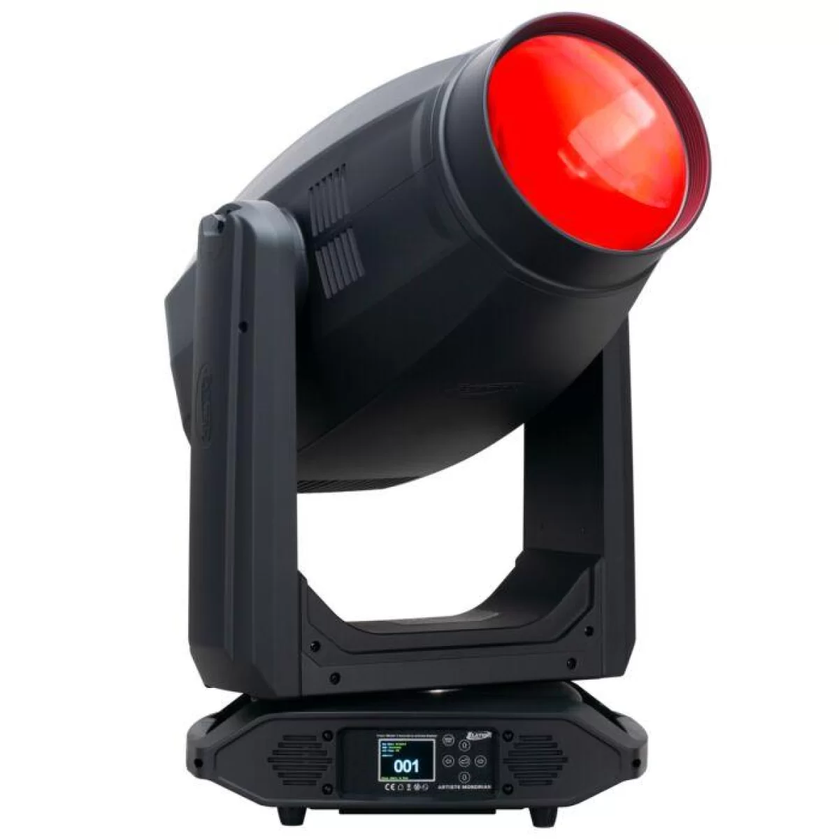 51 000 люмен,,мощность 950 Вт, 6500 К. Mondrian является идеальным приспособлением для любого применения, требующего большой мощности, ярких и мощных узких лучей, тихой работы, а также потрясающих эффектов и цветов. Mondrian интегрирует новую систему SpectraColor от Elation, которая предлагает традиционное микширование CMY, но и добавляет переменную цветовую гамму RGB для насыщенных основных цветов. В сочетании с изменяемым CTO, Mondrian позволяет составить цвета, которые раньше было невозможно достичь, от театральных пастелей до самого яркого красного или синего, когда-либо созданного системой смешения цветов.