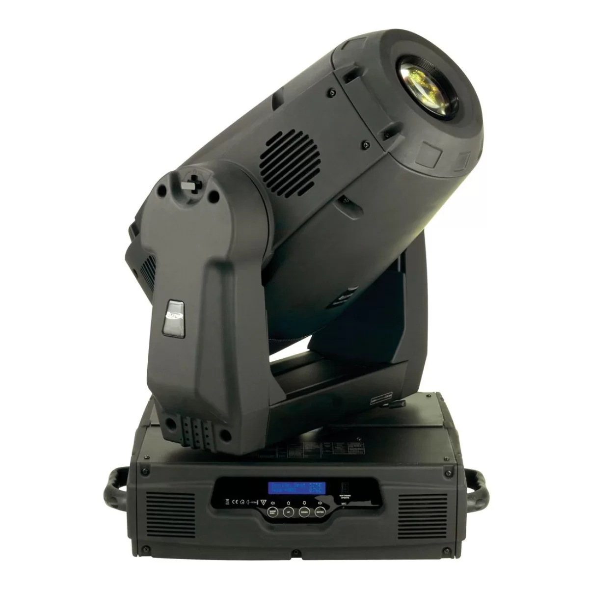 Также имеется 3-гранная вращающаяся призма с панорамой 630 градусов и наклоном 265 градусов. Доступно управление по RDMX, а также управление вентилятором и лампой. Устройство имеет свето-параболический дихроичный отражатель высокой мощности и 8 сменных (quickout) дихроичных цветовых фильтров, а также 2 колеса гобо, всего 13 гобо сменные. Также имеется механическая система затемнения с двумя флажками и регулируемый эффект строба скорости. Кроме того, доступна автоматическая коррекция положения панорамирования / наклона и блокировка панорамирования / наклона.