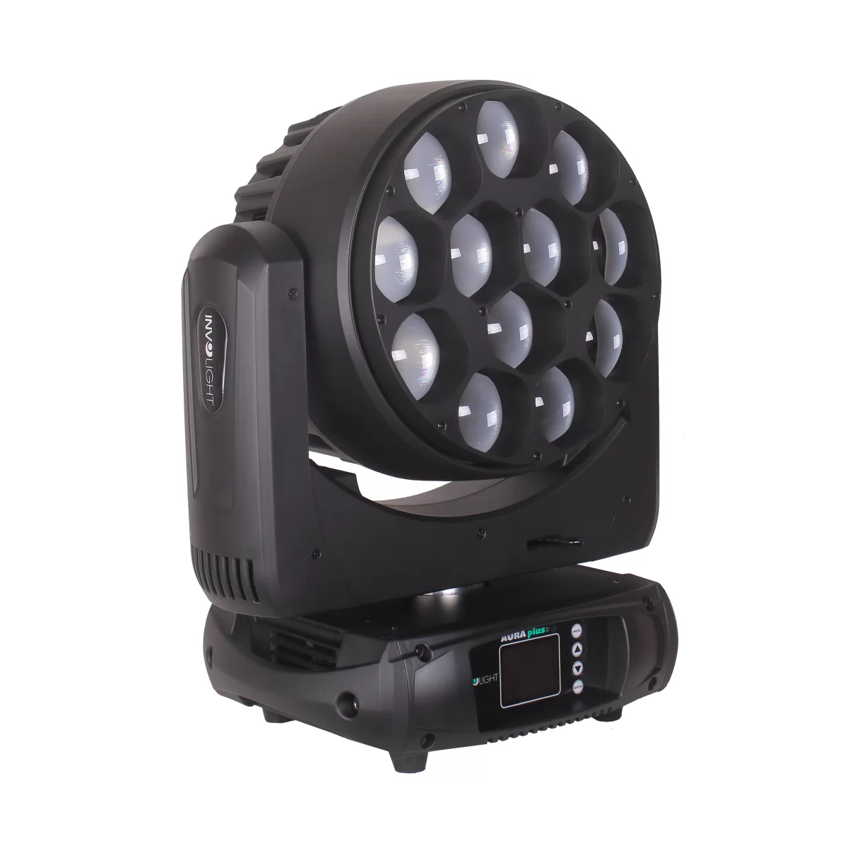 Регулируемый зум, широкий выбор многочисленных цветовых макросов, пресетов, только добавляет многофункциональность новой голове вращения AURA PLUS от INVOLIGHT.