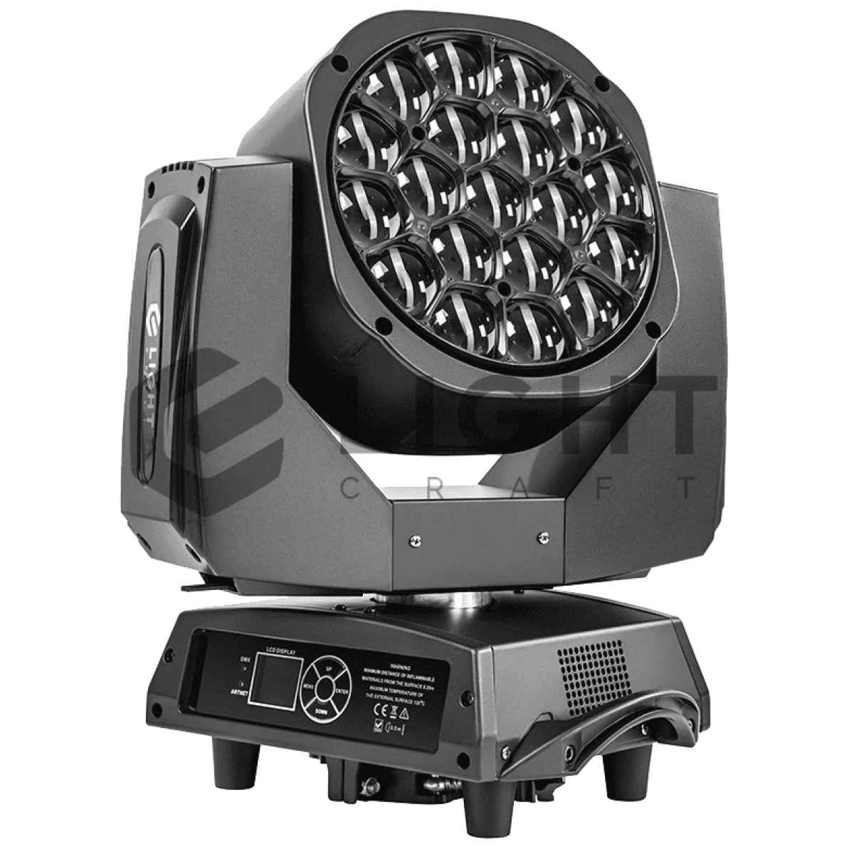 LightCraft 19x15W B-EYE оснащена передовой оптической системой, обеспечивающей яркость, четкость и отличную цветопередачу. С вращающимся панорамированием на 360° и наклоном, вы сможете создавать яркие и динамичные световые композиции, которые придадут вашему мероприятию стиль и эффектность.