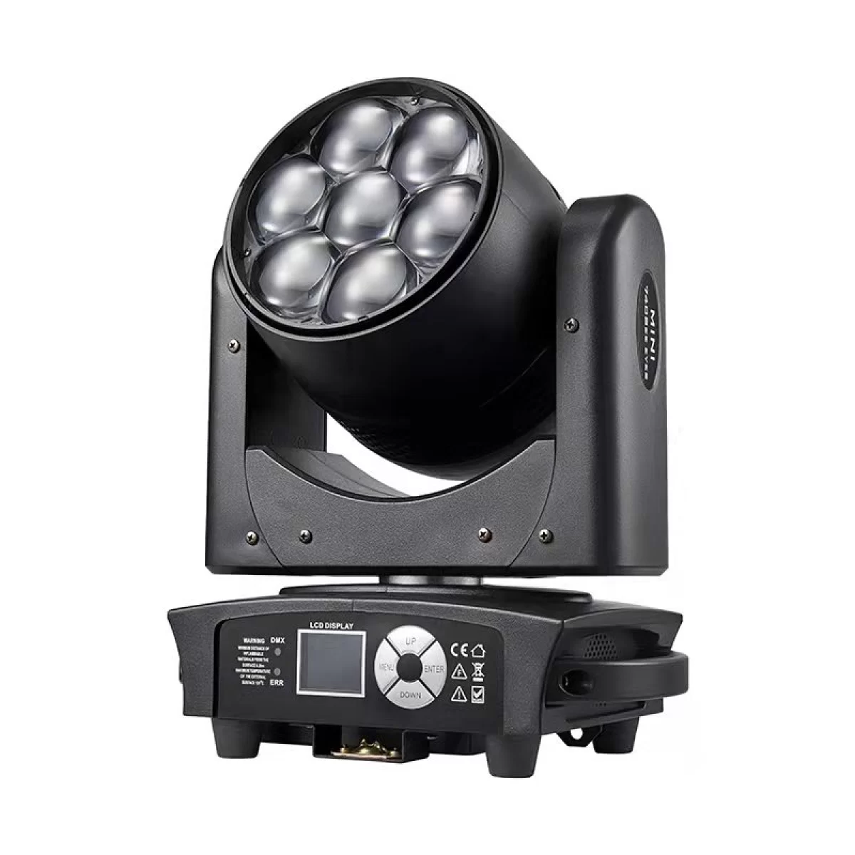 Световой прибор полного вращения с функцией Bee eye - это мощный и универсальный световой прибор, который обеспечивает широкие возможности для создания эффектов освещения. Источник света состоит из 7 LED ламп мощностью 40W каждая, что обеспечивает яркий и насыщенный свет с возможностью смешения цветов RGBW 4in1.