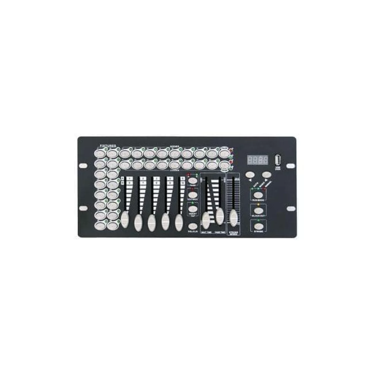 Этот прибор на первый взгляд является небольшим, но удобным пультом для работы с простыми динамическими приборами, а также световыми эффектами. Эта консоль прекрасно подойдет для маленьких и небольших прокатов, свадебных организаторов, актовых залов школ и клубов кароке.