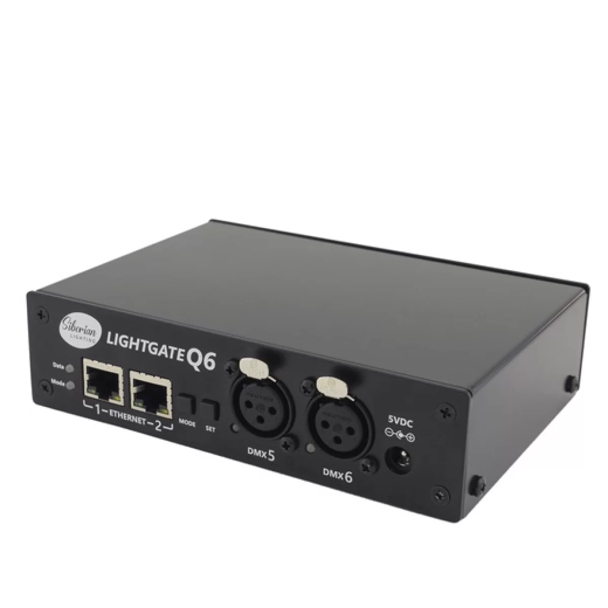 Контроллер LightGate Q6 предназначен для управления световыми DMX-приборами через локальную сеть Ethernet. Шесть двунаправленных DMX-портов. Поддерживает протокол ArtNet v4, DMX512, (RDM - в следующем обновлении прошивки, ориентировочно Ноябрь 2019).