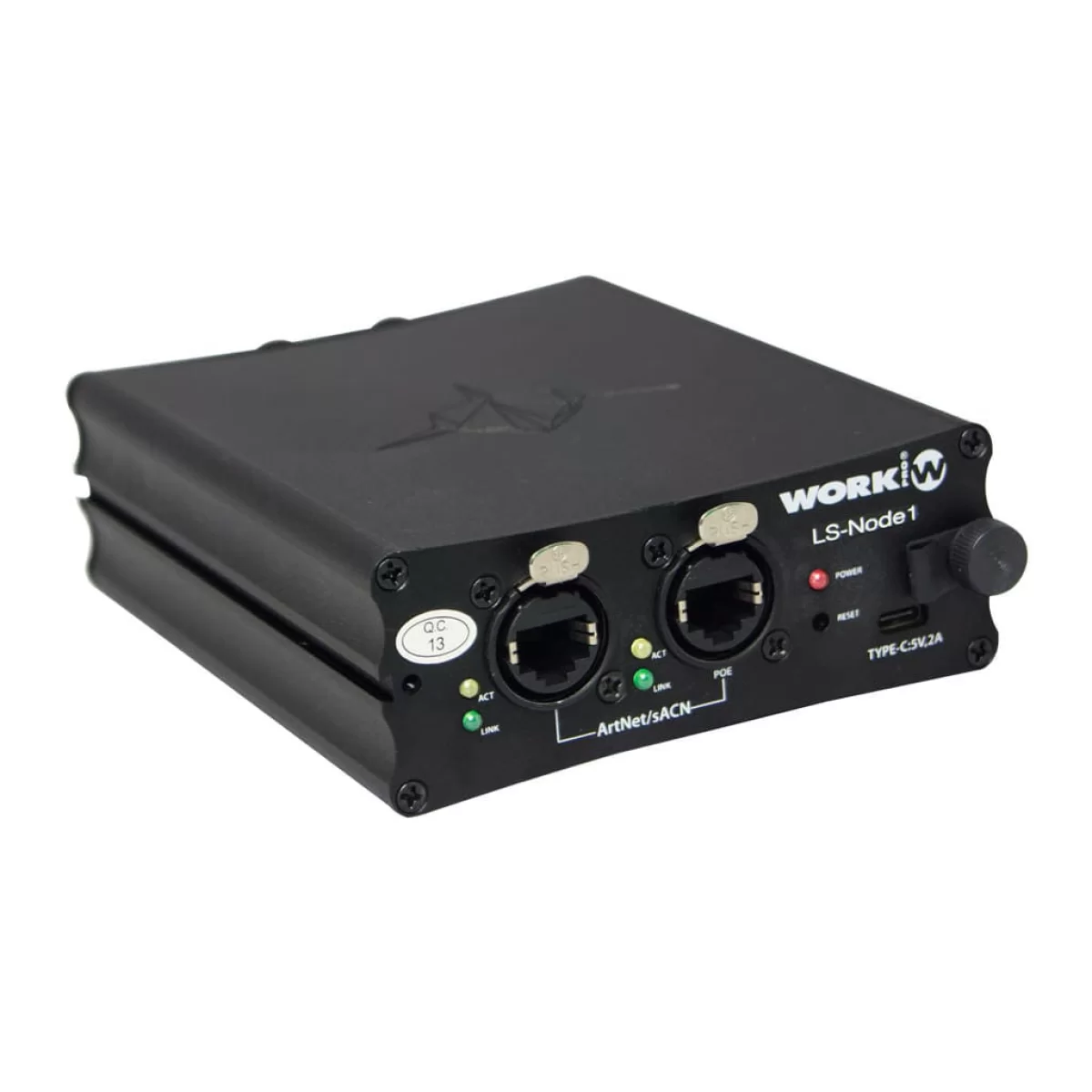 Work LS NODE 1 - Узел передачи RDM/DMX через Ethernet, 1 вход/1 выход RDM/DMX, совместим с консолями LightShark, поддержка ArtNet и sACN, питание PoE или через USB-C, WORK