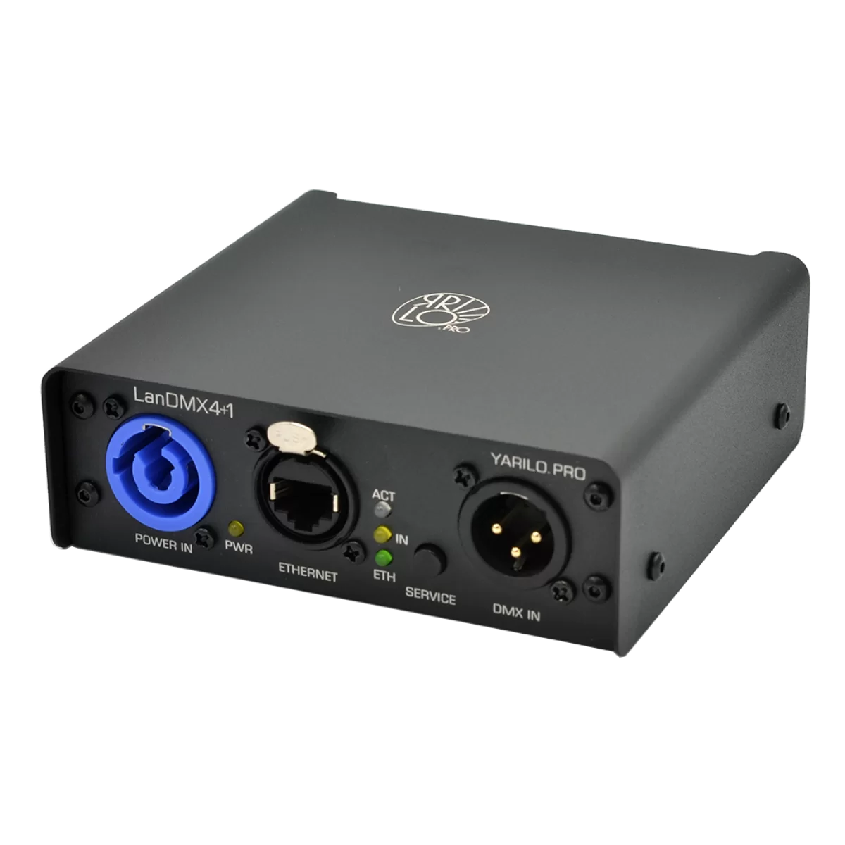 ЯRILO LANdmx4+1 - ART-NET DMX конвертер компании ЯRILO Pro на 4 выхода DMX-512 (2048 каналов) и один вход DMX-512. LANdmx4+1 принимает 4 пространства DMX по локальной сети и выводит на 4 изолированных выхода DMX-512. Со входа DMX данные передаются в локальную сеть по протоколу ARTNET.