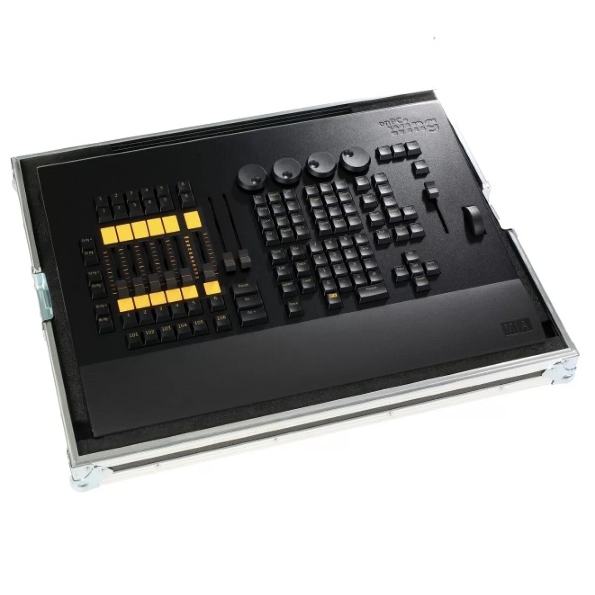 Командная секция грандма в данном световом крыле выполнена точно в соответствии с оригинальной. Клавиши имеют подсветку с регулировкой яркости, а поверхность для размещения запястий прорезинена и приятная на ощуть. Cветовой пульт имеет 2 A B фейдера (100 мм) и 1 колесо уровня. Просто подключитесь через USB к любому компьютеру, на котором работает grandMA2 onPC и управляйте световыми приборами.