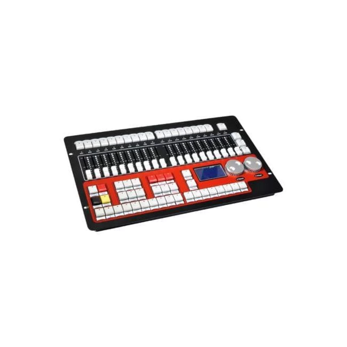 Память пульта позволяет воспроизводить одновременно до 54 сцен. 16 качесственных фейдеров весьма удобны как для набора световых картин, так и для прямого доступа к необходимым каналам управляемого прибора. Любые изменения работы с фейдерами и клавишами программирования отображаются на жидкокристаллическом дисплее.