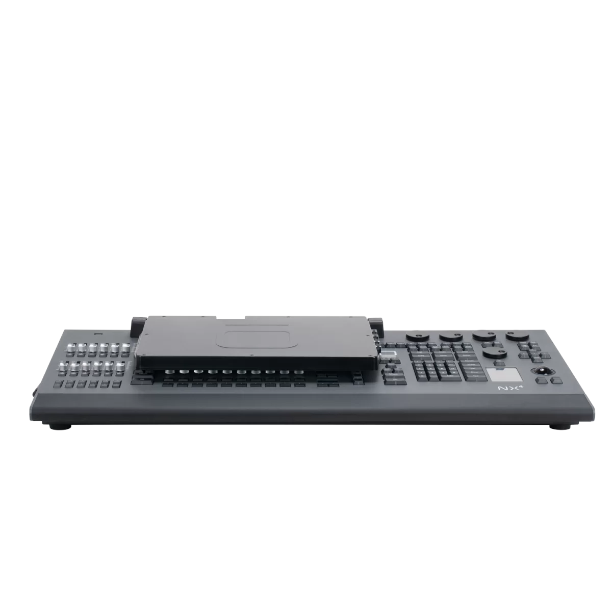 Несмотря на компактность форм, он предлагает очень продуманную рабочую поверхность, в которой сочетаются моторизованные и ручные фейдеры, а также целый массив плейбеков (всего 44). NX4 сконструирован на базе инновационной платформы ONYX от Obsidian Control System, предлагающей широкий функционал и массу возможностей для работы. Пульт комплектуется ярким мультисенсорным экраном Full HD, 8 назначаемыми энкодерами, специальным энкодером для управления интенсивностью, вспомогательным мультисенсорным экраном, клавиатурой и секцией управления с кнопкой Grand Master.