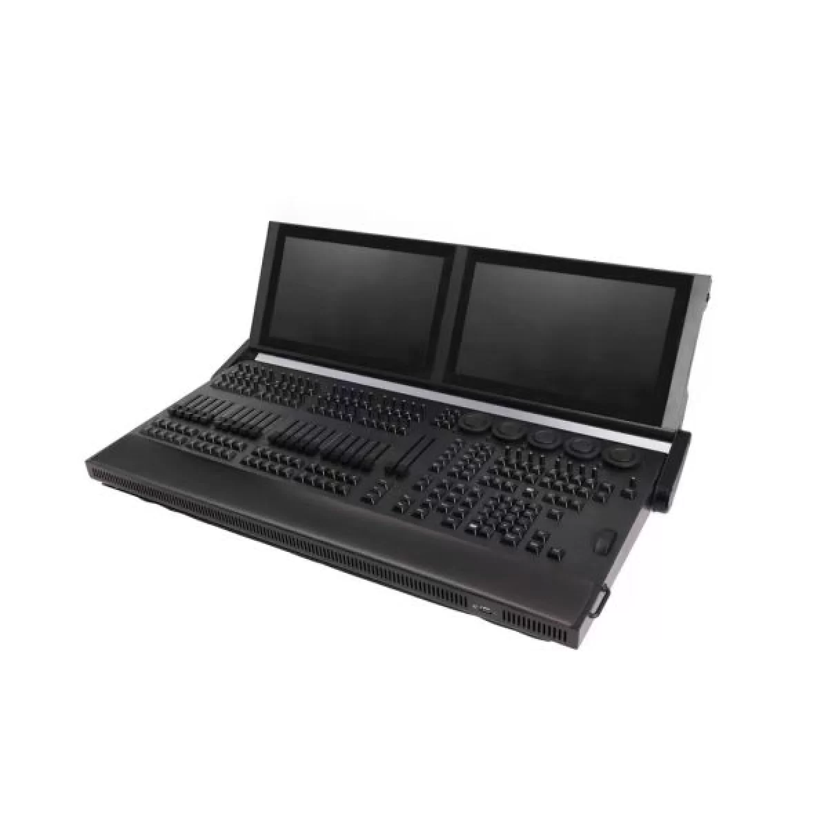 - Встроенные мониторы: пульт оснащен двумя складными сенсорными мониторами, которые обеспечивают удобный доступ к настройкам и управлениями. Сенсорные экраны позволяют быстро и интуитивно настраивать параметры освещения.