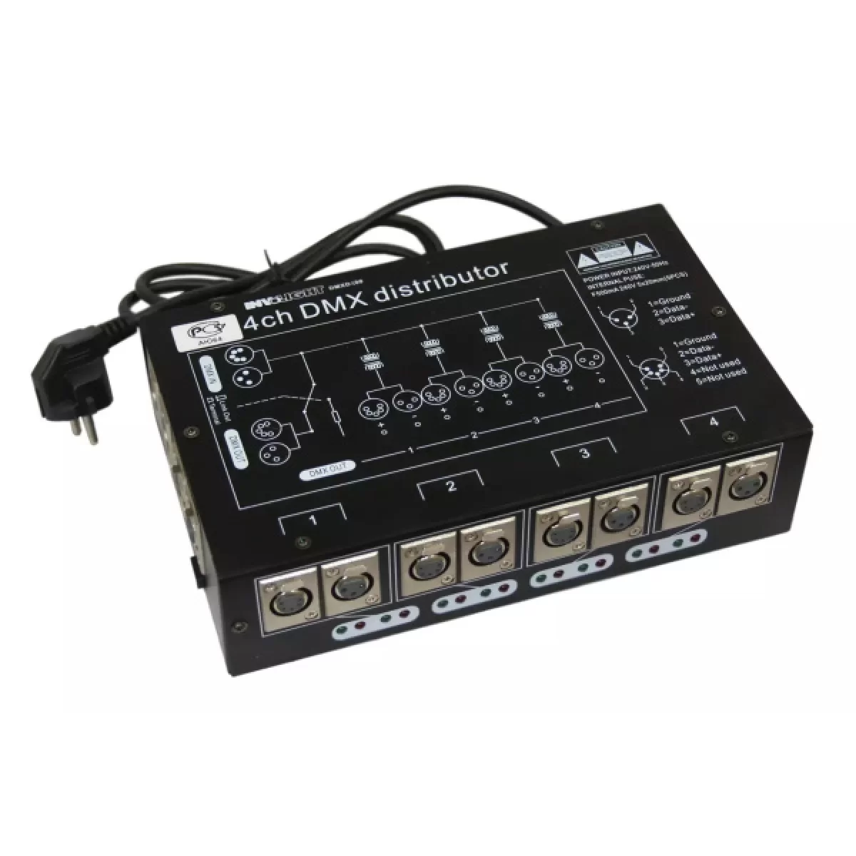 Устройство имеет один вход и четыре выхода, абсолютную электрическую изоляцию между входом и выходом или между выходом и выходом. Два типа разъема DMX (3pin и 5pin) для каждого отдельного канала, каждый выход DMX оснащен независимым драйвером. Также присутствуют DATA+/data- индикаторы и переключатель DMX. Световое оборудованием компании Involight идеально подойдет для освещения сцен, театров, клубов, баров и других площадок разного размера.