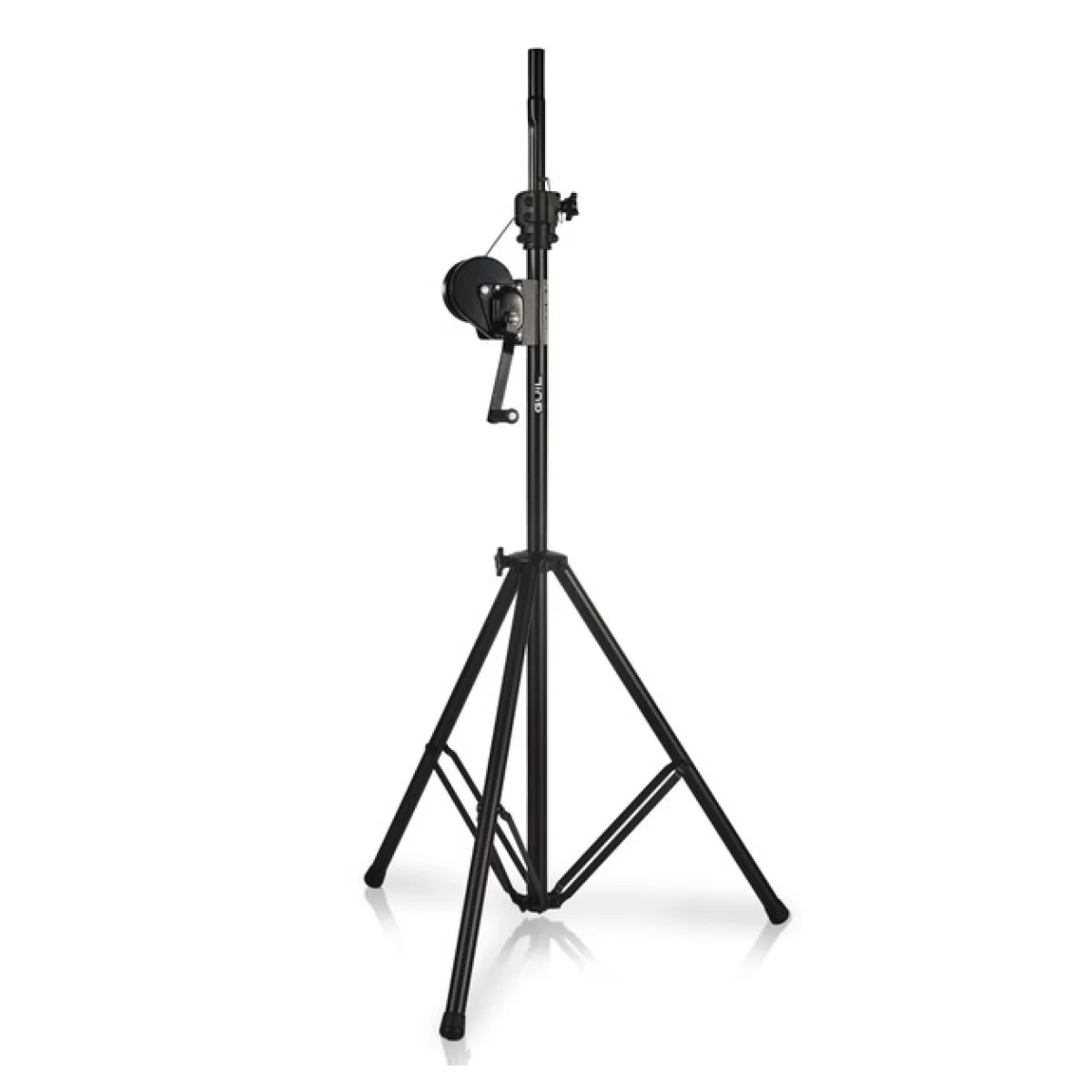 GUILGUIL ELC-700 - Компактный телескопический подъёмник для прожекторов с вертикальной загрузкой, сертифицированный для подъёма груза весом до 85 кг на высоту до 3,3 м, специально разработанный для удобной транспортировки в сложенном виде.
