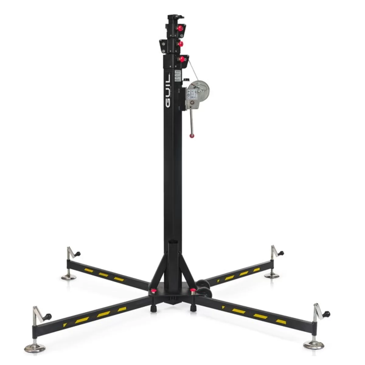 GUIL ELC-735 компактный телескопический подъёмник с вертикальной загрузкой, состоящий из четырёх стальных секций, сертифицирован для подъёма груза весом до 125 кг на высоту до 5 м.