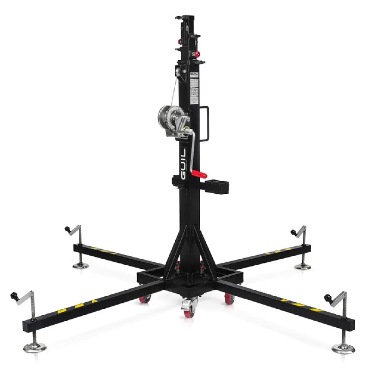 GUIL ELC-750 телескопический подъёмник с вертикальной загрузкой, состоящий из четырёх стальных секций, сертифицирован для подъёма груза весом до 150 кг на высоту до 4,5 м.