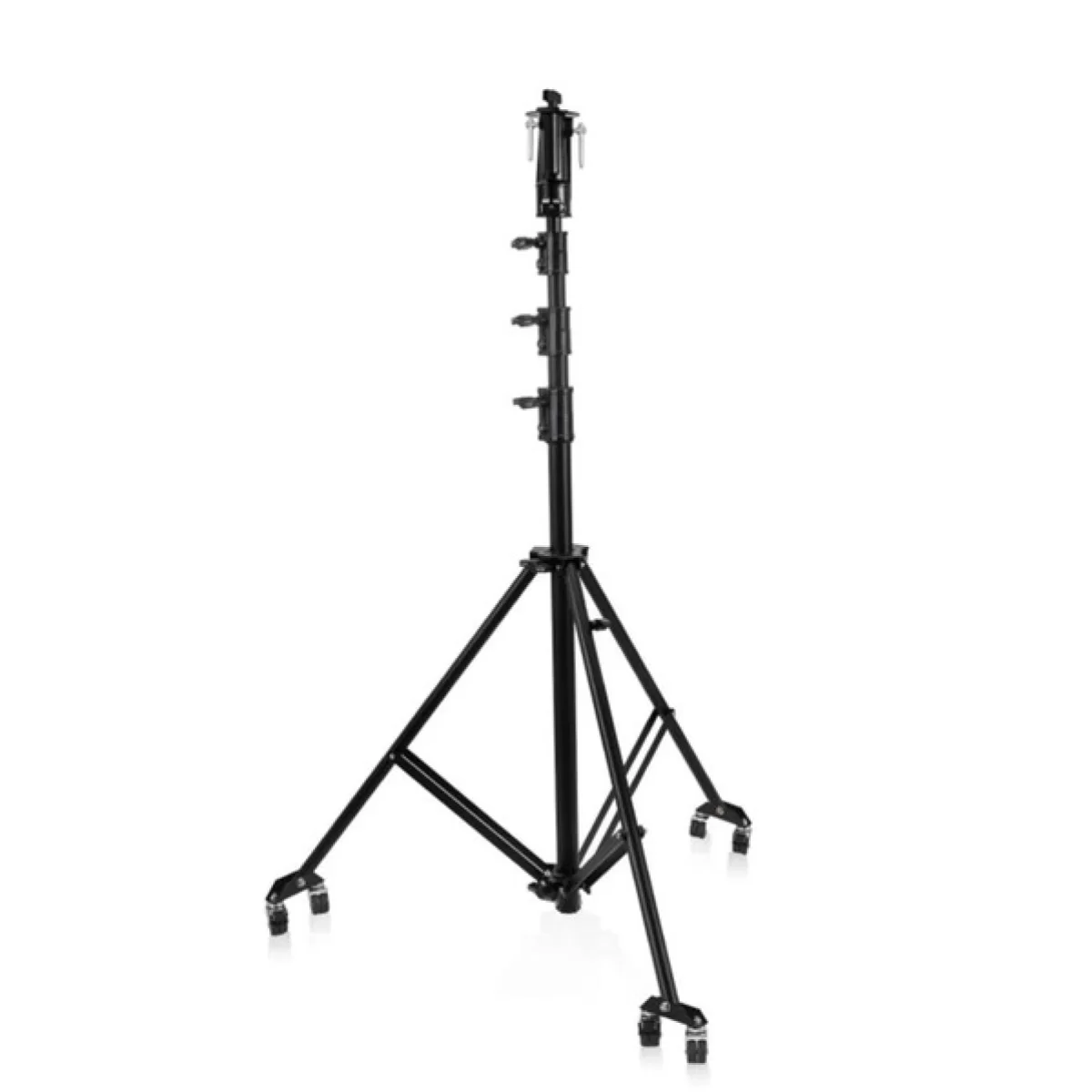 GUILGUIL FC-06/R телескопическая стойка на колёсах с мультиадаптером ADT-28/3 для установки телевизионного и осветительного оборудования, использующегося в телестудиях, на съёмочных площадках и в других ситуациях, где необходимо разместить свет на большой высоте (до 4,18 м).