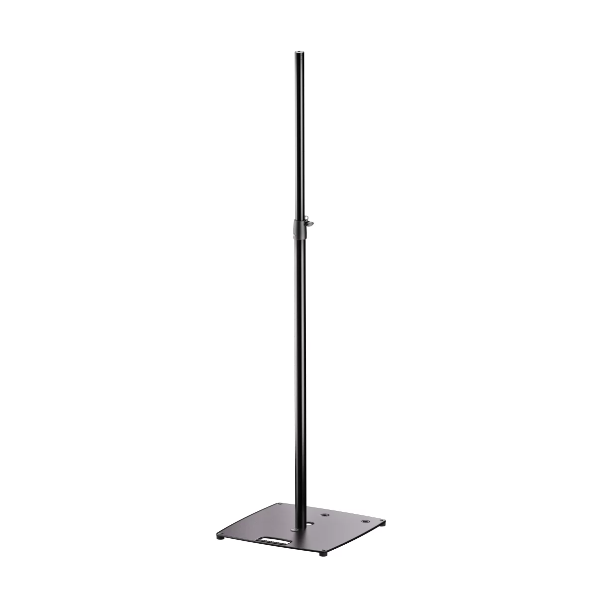 Привлекательная стойка для световых приборов и небольших акустических систем. Благодаря тяжелой плоской стальной плите стойка подходит для использования в местах с ограниченным пространством. В зависимости от требований, существует три способа позиционирования выносной штанги. Помимо центрального и смещенного положения, трубчатая комбинация также может быть установлена в углу. Ручка для переноски, система кабель-менеджмента и четыре прочные ножки — дополнительные полезные особенности. Высота фиксируется с помощью предохранительного крючка и дополнительно закрепляется малошумным, безлюфтовым зажимным винтом. Узкая конструкция зажима позволяет экономить место при транспортировке и обеспечивает стильный внешний вид. Полезная высота регулируется в диапазоне от 1420 до 2420 мм с шагом 200 мм (5 положений). Встроенная резьбовая втулка M10 позволяет крепить поперечную ферму или осуществлять прямой монтаж осветительных приборов. Максимальная нагрузка при центральном расположении в среднем положении составляет 20 кг.