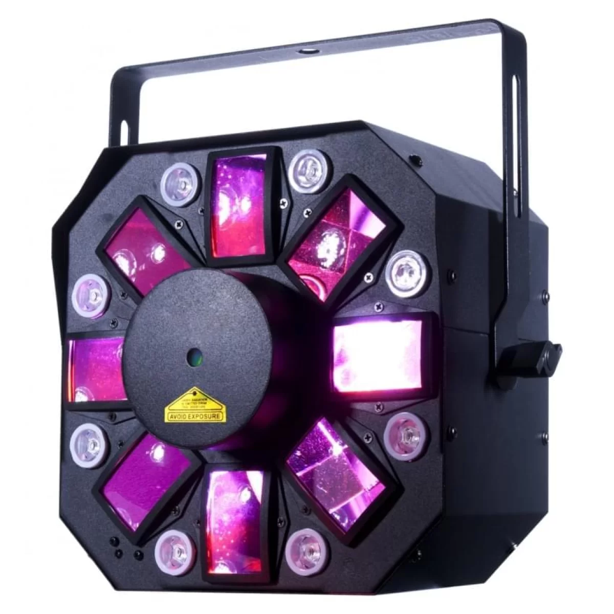 - 3 мощных спецэффекта в одном устройстве: Moonflower, стробоскопический и лазерный спецэффекты