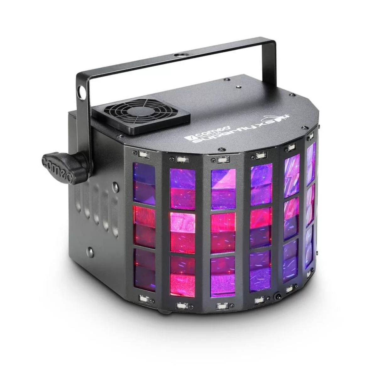С четырьмя долговечными 3-ваттными светодиодами RGBW и 48 точными линзами SUPERFLY XS создает яркий эффект дерби широких острых лучей света, прорезанных интенсивными, ультра яркими цветами. Встроенный строб состоит из 16 белых светодиодов 0,5 Вт. Оба эффекта можно использовать индивидуально.