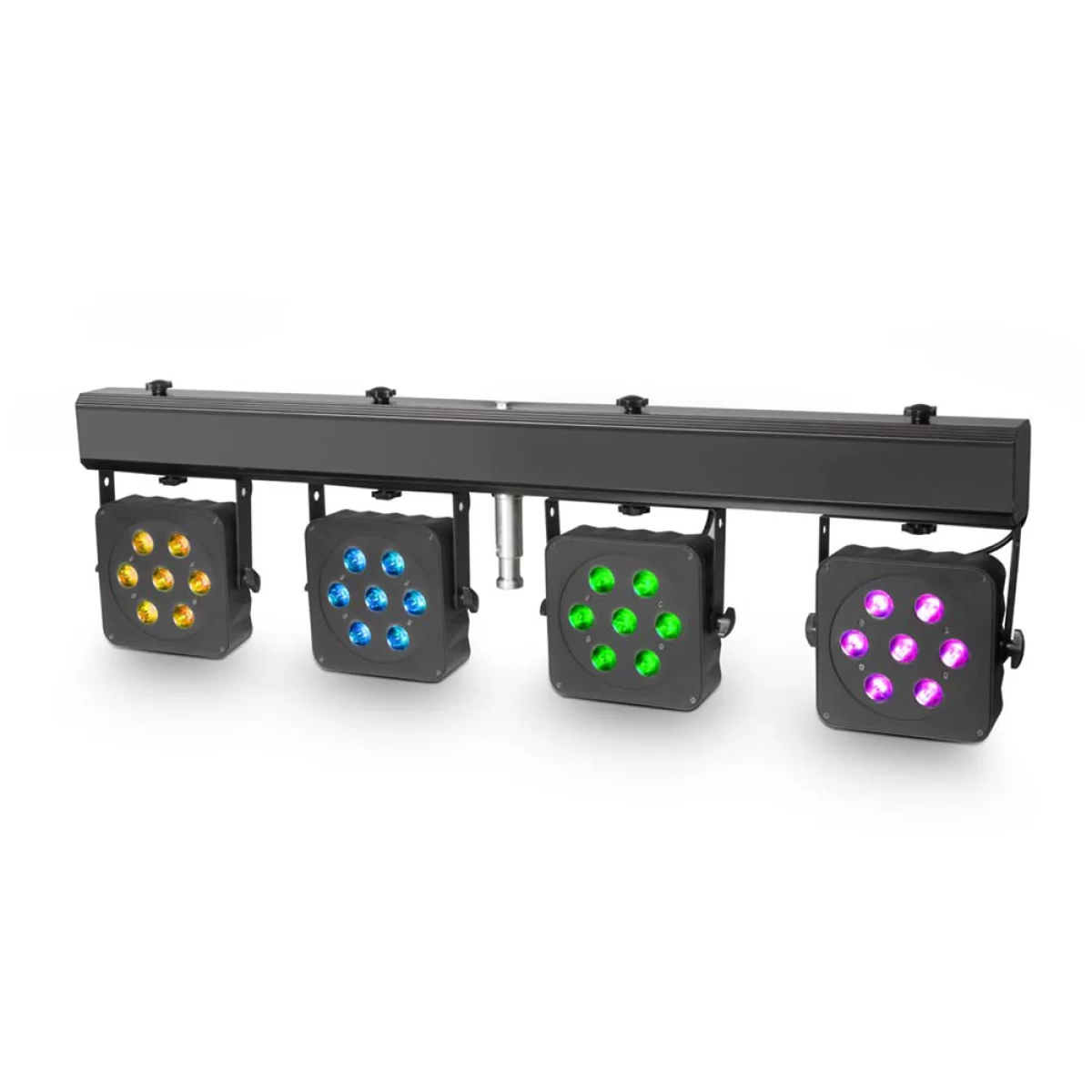 Четыре компактных плоских PAR-ов, установленных на баре со встроенным управлением, делают CLMPAR 2 идеальным базовым комплектом для освещения сцены. В общей сложности 28 ультра-ярких 3-ваттных RGB светодиодов создают впечатляющую яркость и идеальный цветовой микс.