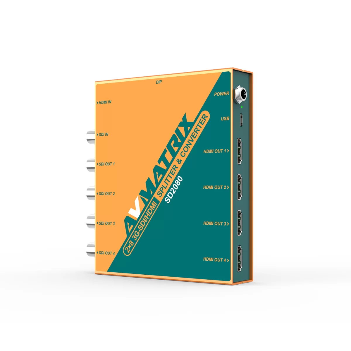 AVMATRIXAVMATRIX SD2080 2х8 SDI/HDMI – профессиональный разветвитель и конвертер, преобразующий сигналы SDI и HDMI.