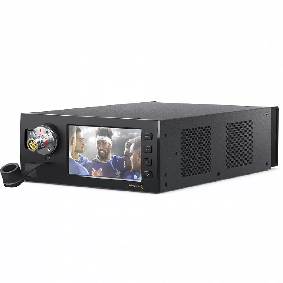 Blackmagic Studio Fiber Converter предназначается для установки на другом конце цепи и выполняет преобразование получаемого сигнала для вывода на эфирные видеомикшеры , звуковые пульты и другое студийное оборудование. Конвертер позволяет питать съемочную технику со всеми аксессуарами , поддерживает индикацию состояния и обмен сообщениями двусторонней связи для подключения интерком-систем сторонних производителей , а также дает возможность использовать резервный канал для контакта с техгруппой при сбое на основной линии. Эта модель обеспечивает передачу Ultra HD- и трех независимых HD-потоков, дистанционное управление камерой и панорамированием через один оптоволоконный кабель по стандарту SMPTE. Дополнительно предусмотрен 5-дюймовый ЖК-дисплей, который служит для мониторинга поступающего изображения и помогает менять необходимые настройки.