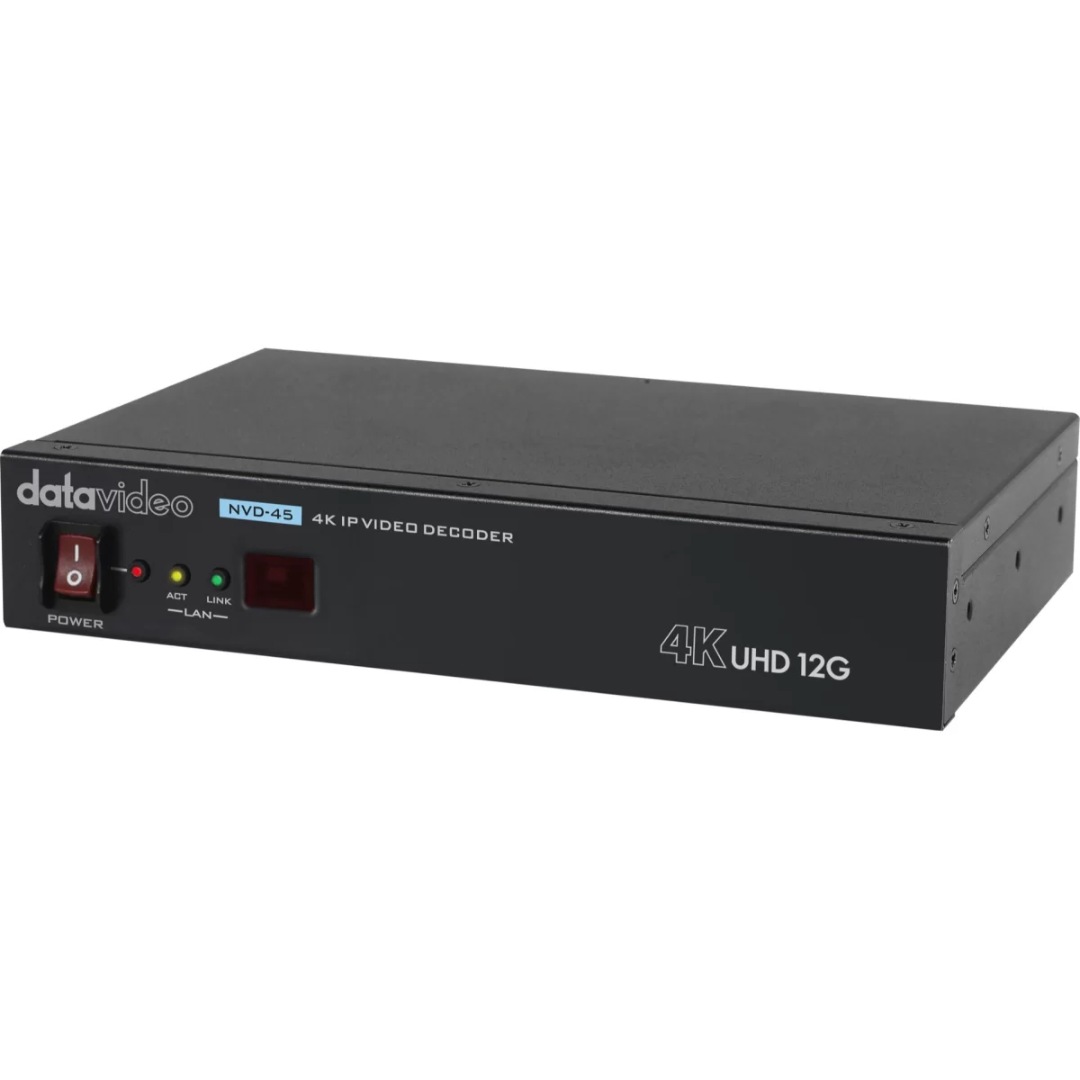 В современном видеопроизводстве всё чаще возникает задача приёма и вывода 4K‑видеосигнала, полученного через IP‑сети. Передача видео по протоколам SRT, RTMP, RTSP, HLS и MPEG‑TS требует надёжного оборудования, способного работать с высоким разрешением в реальном времени. Datavideo NVD‑45 — это IP‑видеодекодер H.264/H.265 с поддержкой 4K, который одновременно выводит сигнал на два 12G‑SDI и один композитный выход. Он совместим с популярными CDN‑платформами (YouTube Live, Dailymotion, Livestream) и позволяет создавать 4K‑соединения «точка‑точка» через Ethernet, Wi‑Fi или публичный Интернет.