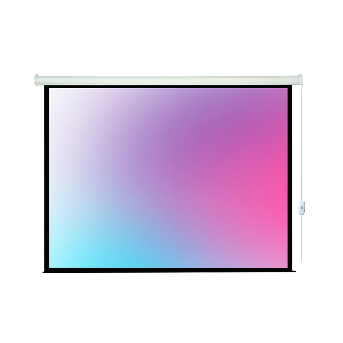 Нижняя планка обеспечивает идеально ровное натяжение полотна на экране, вместе с отсутствие швов на проекционной поверхности это обеспечивает ровную проекцию изображения. А черная кайма по периметру улучшает восприятия яркости. Переключатель, входящий в комплект, легко заменяется на беспроводное устройство, позволяя управлять экраном и на расстоянии. Экран легко монтируется, имеет бесшумный мотор, а материалы полотна экрана экологически безопасны и полностью удовлетворяют требованиям пожарной безопасности.
