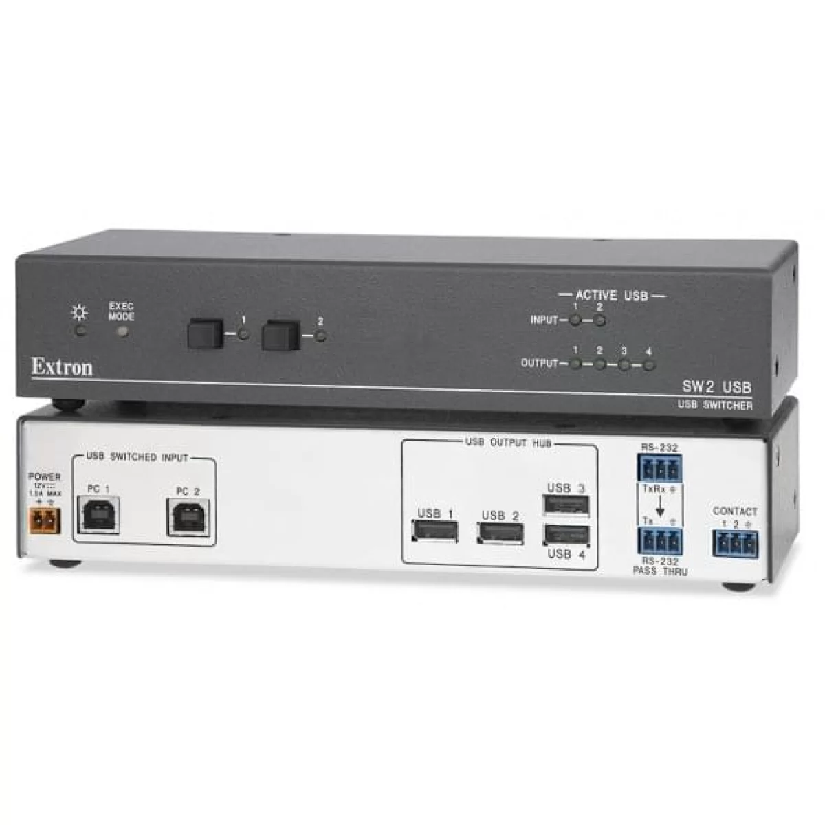 Extron SW2 USB - это коммутатор на два или четыре входа USB, позволяющие переключаться между неско лькими хост-устройствами и несколькими периферийными USB устройствами. Для облегчения интеграции были реализованы несколько возможностей, включая отображение статуса порта, пропускание RS-232, блокировку передней панели и возможность управления из нескольких мест. SW4 USB Plus предоставляет дополнительные возможности в режиме эмуляции, обеспечивая непрерывное соединение устройств для увеличения надежности в задачах KVM. Линейка SW USB идеальная для использования в KVM, интерактивных белых досках, приложениях, основанных на аннотаторе в образовании, юриспруденции и в корпоративном секторе - везде, где требуется коммутация множества входов/выходов USB.