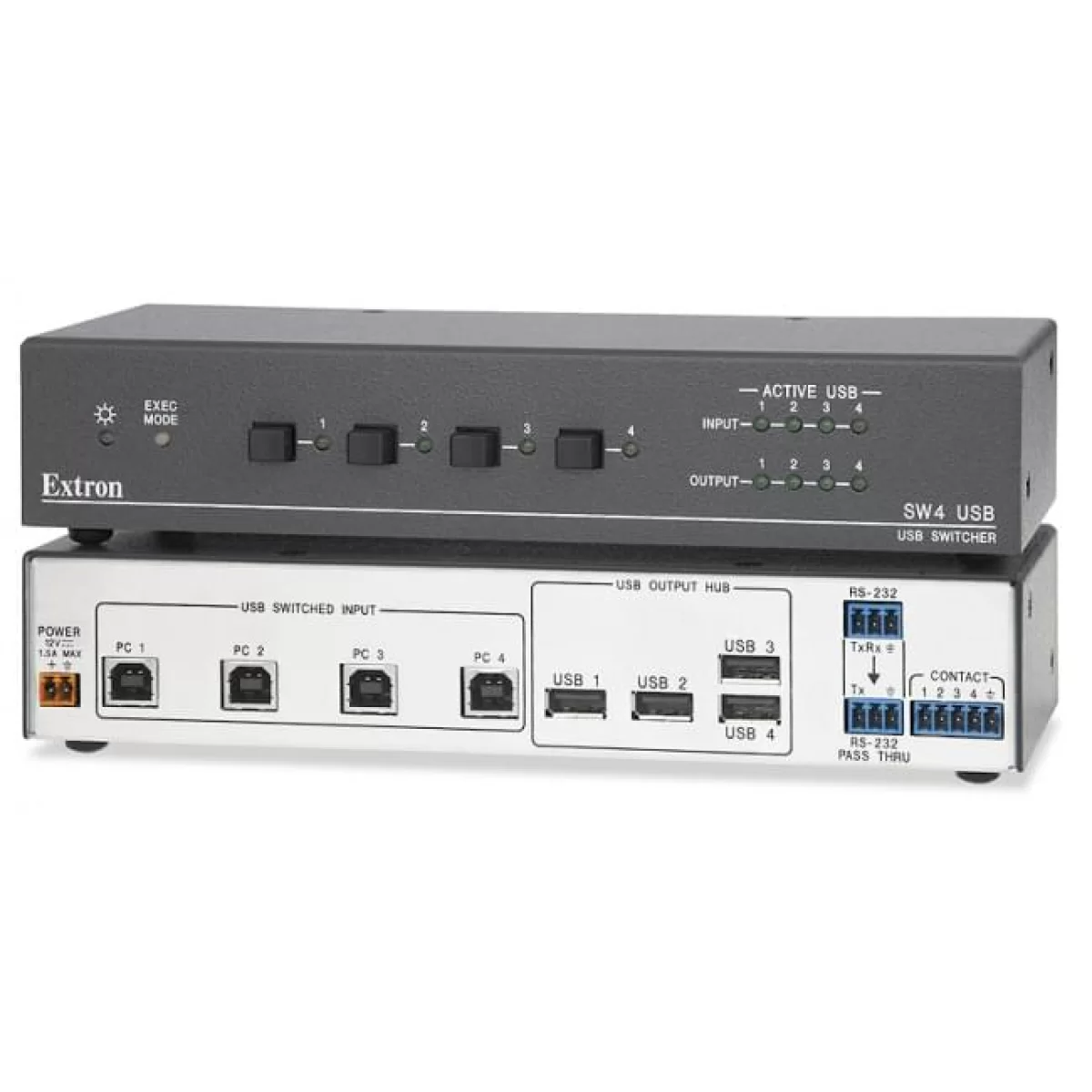 Extron SW4 USB - это коммутатор на два или четыре входа USB, позволяющие переключаться между неско лькими хост-устройствами и несколькими периферийными USB устройствами. Для облегчения интеграции были реализованы несколько возможностей, включая отображение статуса порта, пропускание RS-232, блокировку передней панели и возможность управления из нескольких мест. SW4 USB Plus предоставляет дополнительные возможности в режиме эмуляции, обеспечивая непрерывное соединение устройств для увеличения надежности в задачах KVM. Линейка SW USB идеальная для использования в KVM, интерактивных белых досках, приложениях, основанных на аннотаторе в образовании, юриспруденции и в корпоративном секторе - везде, где требуется коммутация множества входов/выходов USB.