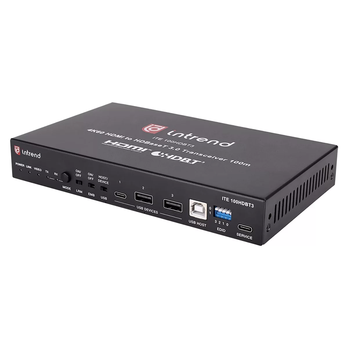 Передатчик/приёмник ITE-100HDBT3 предназначен для трансляции сигнала HDMI и управляющих сигналов Ethernet (1 Гбит/с), USB 2.0, RS-232 и ИК на значительные расстояния с использованием унифицированного интерфейса HDBaseT® версии 3.0. Функция прибора (приёмник или передатчик) выбирается при его установке на месте эксплуатации.