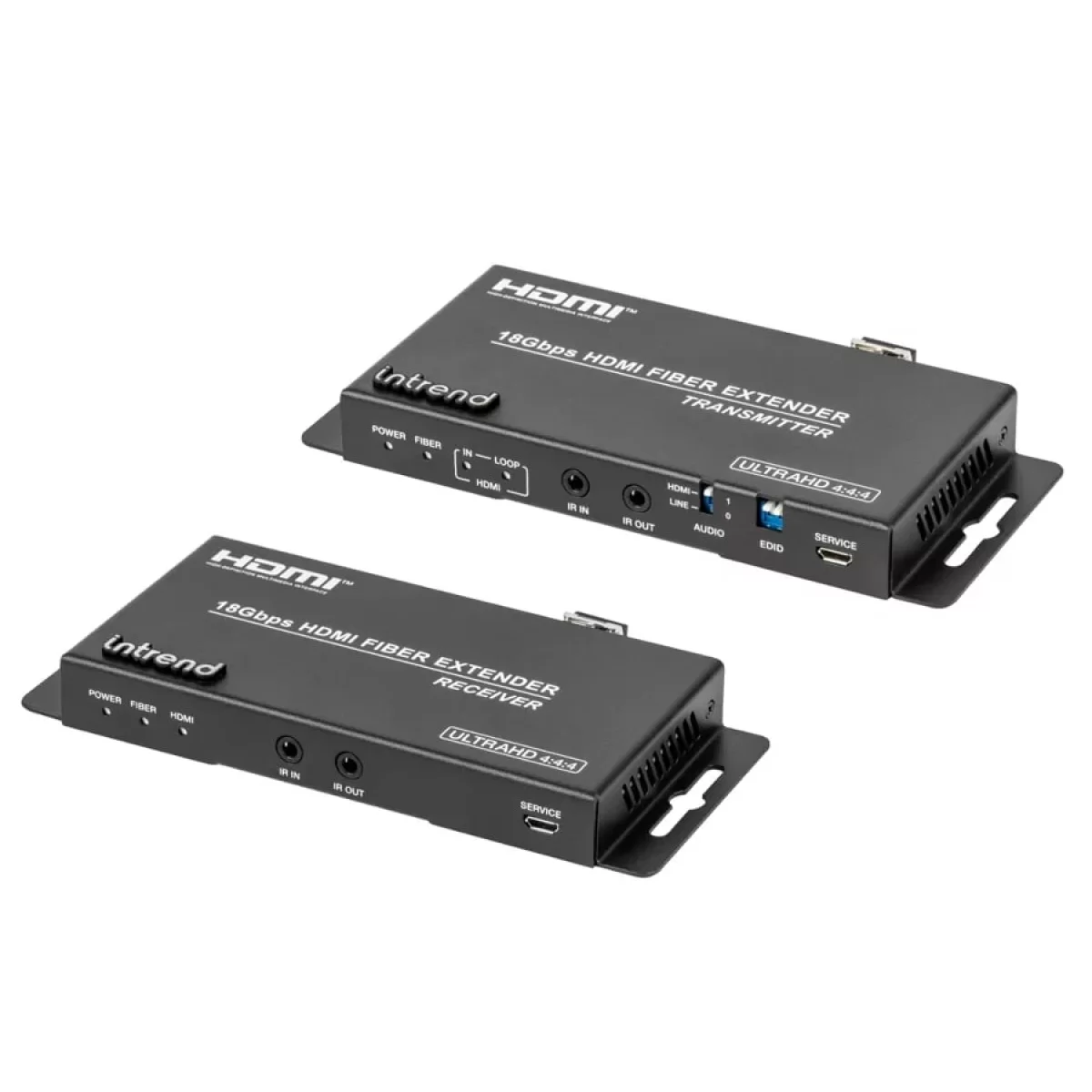 - Передатчик кодирует сигнал HDMI, RS-232, ИК и передаёт в оптическую линию связи через сменный модуль SFP. Приёмник принимает и раскодирует такой сигнал с помощью ответного модуля SFP