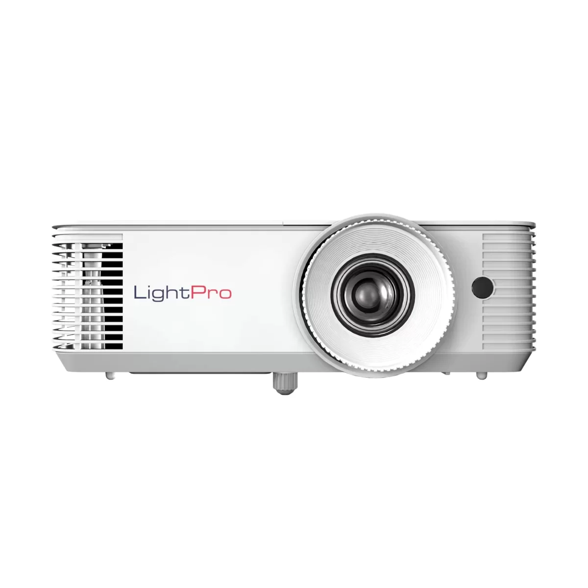 Модель оснащена стандартным объективом с ручной фокусировкой и оптическим зумом 1.1×, позволяя проецировать изображение шириной до 3 метров с расстояния от 1,2 до 12 метров. Поддержка максимального разрешения до 1920×1200 и 3D через DLP-Link расширяет возможности для мультимедийных приложений. Коррекция трапецеидальных искажений (±40° по вертикали) упрощает установку в нестандартных условиях.