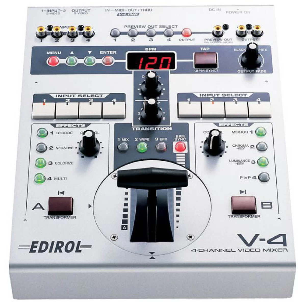 Roland V-4 - Идеален для использования в ночных клубах, театрах и других местах, где предпочтительна работа «вживую».V-4 представляет собой 4-канальный видеомикшер для мобильного и стационарного вариантов применения. Компактный дизайн V-4 позволит вдохнуть жизнь в любой видеоматериал.