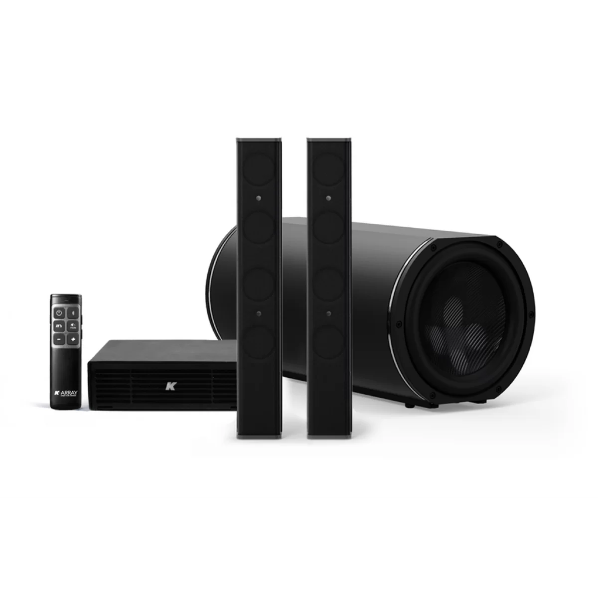 Каждый громкоговоритель Vyper-KV25 оснащен четырьмя 1” высокоэффективными излучателями с неодимовыми магнитами и тщательно спроектированной системой подвеса, обеспечивающей максимальную линейность звуковоспроизведения и минимальный уровень собственных шумов. Сабвуфер Truffle-KTR26 выполнен в виде 12-дюймового (30 см) цилиндра, в котором установлены два 6 дюймовых драйвера. Компактные размеры сабвуфера позволяют с легкостью его спрятать под столом или на полке.
