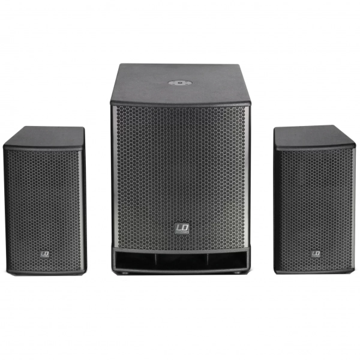 Сабвуфер с фазоинвертором обеспечивает прочную основу для низких частот; сателлиты обеспечивают четко определенные средние и четкие высокие частоты. Модуль усиления мощности 2.1, встроенный в сабвуфер, обеспечивает пиковую мощность 4800 Вт, а интеллектуальный цифровой сигнальный процессор LD LECC гарантирует идеальное взаимодействие и контролируемое функционирование. Цифровой сигнальный процессор включает в себя специально оптимизированные кроссоверы, отдельные эквалайзеры и лимитеры для диапазонов низких, средних и высоких частот. Также имеется динамический компрессор, который регулирует сабвуфер в соответствии с громкостью и обеспечивает повышенную мощность при низкой громкости. Системы имеет прочные корпуса из МДФ, необходимые схемы защиты, разъемы RCA и комбинированные разъемы XLR / jack, Speakon, а также эргономичные ручки. Ручки LD "Evolutive" на сабвуфере - это настоящая инновация - они обеспечивают надежный захват со всех сторон! Подставка для сателлитов наклонена на пять градусов для идеальной ориентации корпуса динамика. Система отлично подходит для портативного использования и удобна в транспортировке, также хорошо подходит для небольших стационарных установок, например, в барах и ресторанах. Стойки для сабвуферов и сателлитов в комплект не входят и приобретаются отдельно.