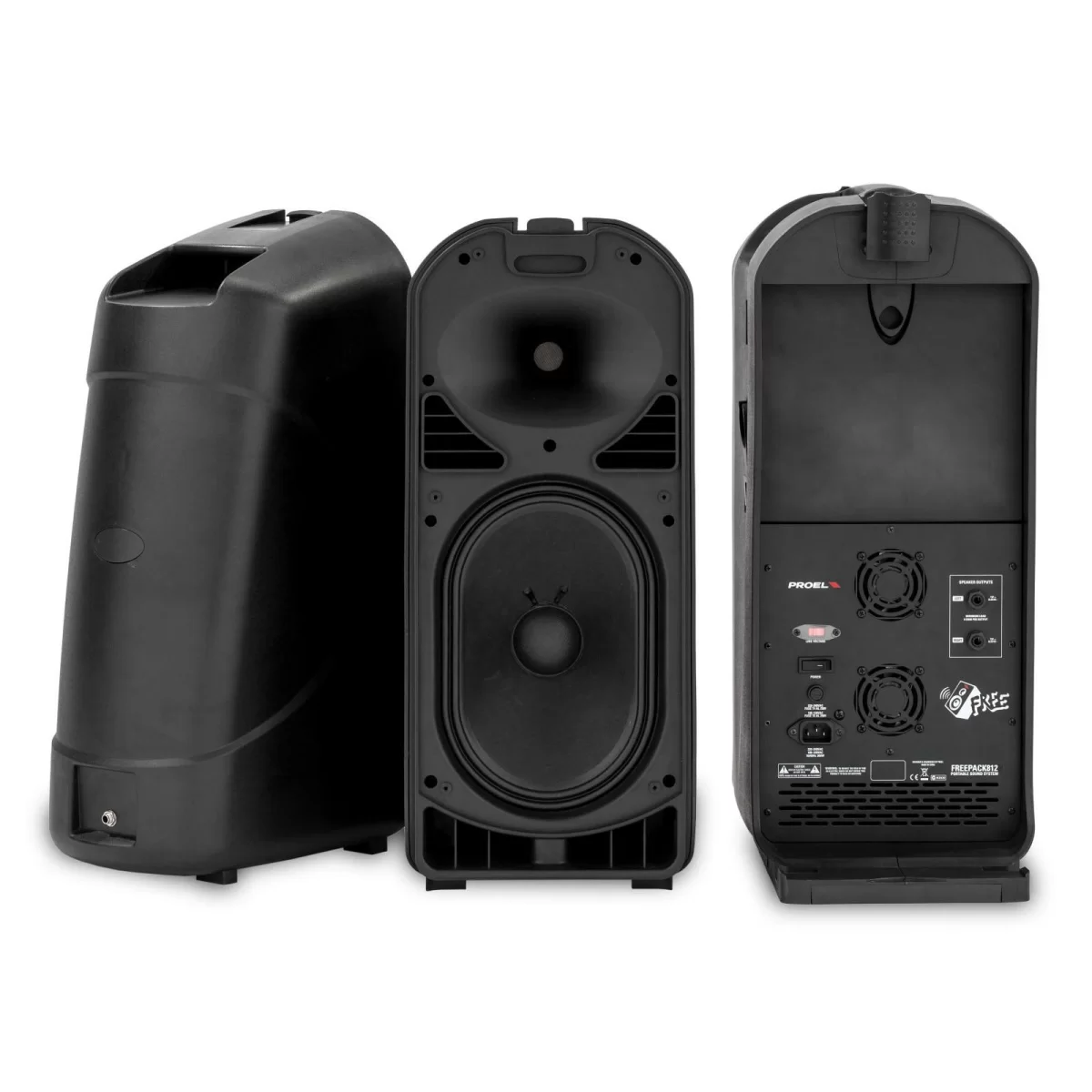 ProelProelFREEPACK812 - Портативный звуковой комплект "All-In-One", включающий в себя полнофункциональный пульт с цифровым блоком эффектов, MP3 плеером с Bluetooth соединением, мощный усилитель класса D, две акустические системы и соединительные кабели. FREEPACK812 является полной PA системой, которая несмотря на компактные размеры, обладает полным набором необходимых функций и обеспечивает неожиданное качество звука для такого типа систем.
