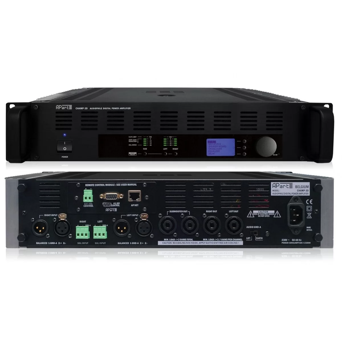 APart CHAMP-3D – Это 2.1-канальный профессиональный усилитель класса D Hypex со встроенным модулем DSP.