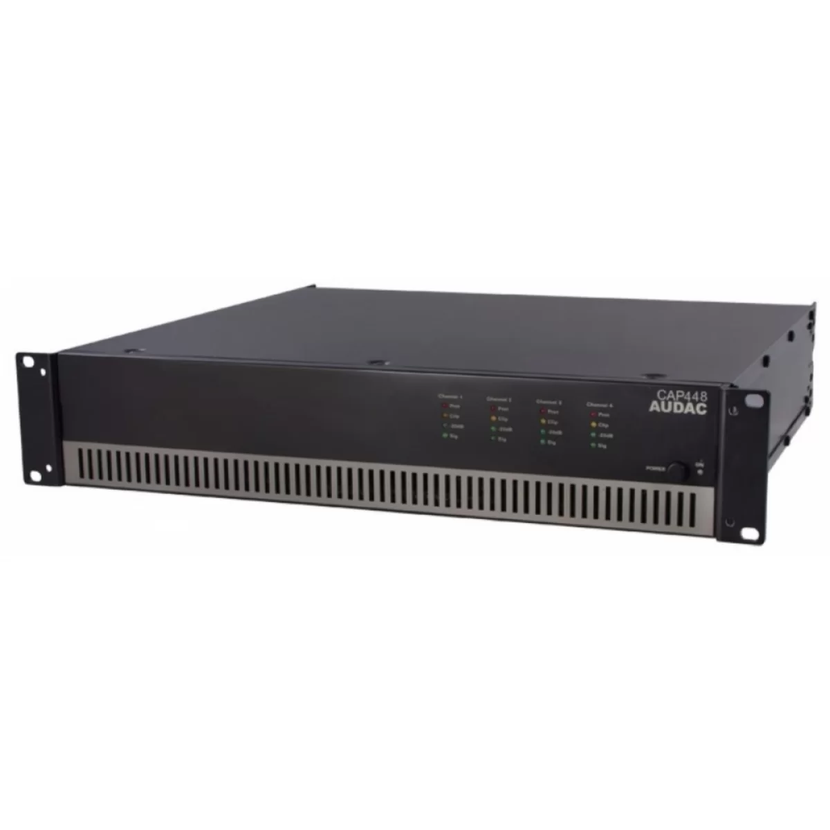 Audac CAP448 – четырехканальный усилитель мощности класса D от компании AUDAC, удовлетворяющий потребности большинства стандартных систем оповещения и озвучивания.