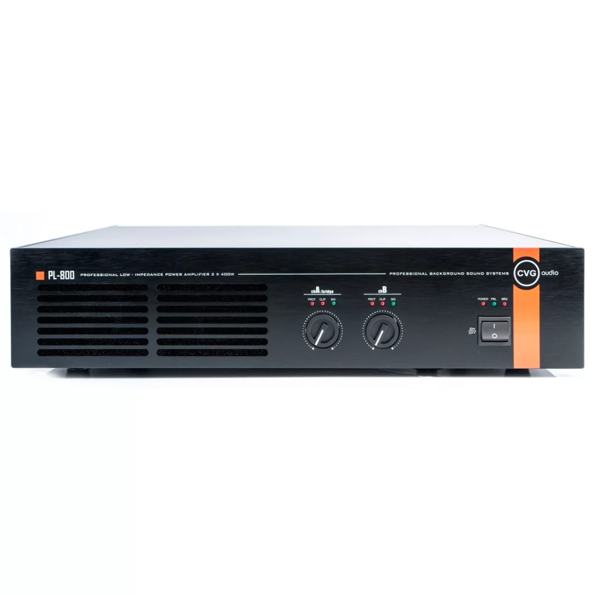 CVGaudio PL-800 – Профессиональный высококачественный низкоомный двухканальный усилитель мощности. Усилитель может применятся как для систем фонового звука в общественных помещениях, так и для более мощных звуковых систем – на небольших дискотеках в ресторанах и барах, в караоке залах, в составе звукоусиливающего оборудования для живых выступлений и т.д.