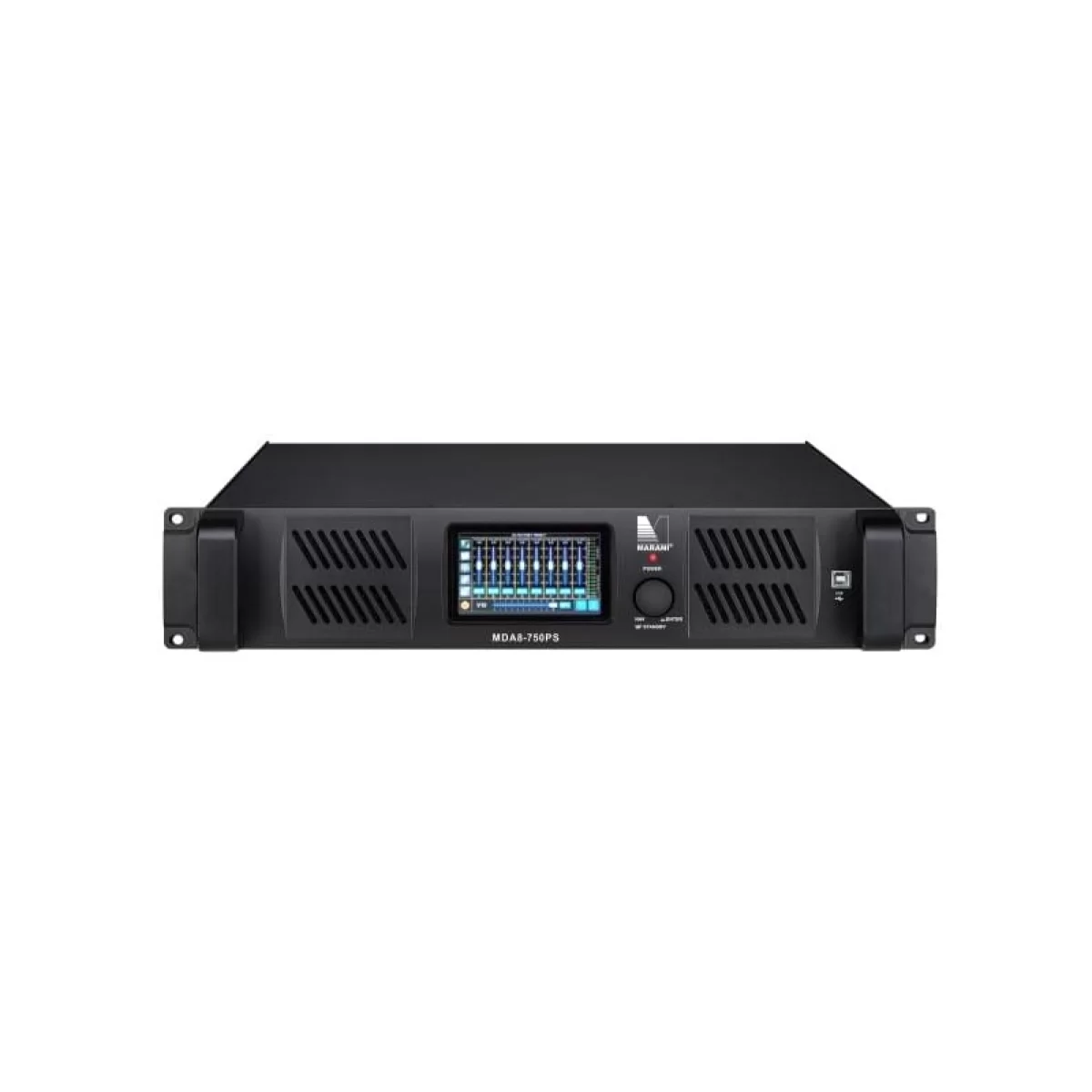 Более того, MDA8-750PS допускает запас в 12 дБ при взаимодействии процессов. Пользователь также может устанавливать параметры, выбирать источник входного сигнала, загружать пресеты и т. д. с помощью сенсорного ЖК-дисплея на передней панели. Помимо обычного аналогового и цифрового входного источников, опциональным также является протокол DANTE™.