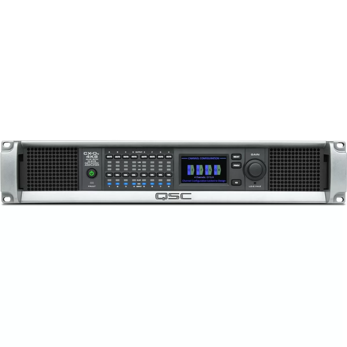 QSC CX-Qn 4K8 оснащен сетевыми входами, которые обеспечивают дополнительные режимы для экосистемы Q-SYS. Усилитель предлагает восемь каналов, способных обеспечивать индивидуальную выходную мощность и общую максимальную мощность до 4000 Вт. Прямой привод Low-Z, 70 В или 100 В доступен на всех каналах