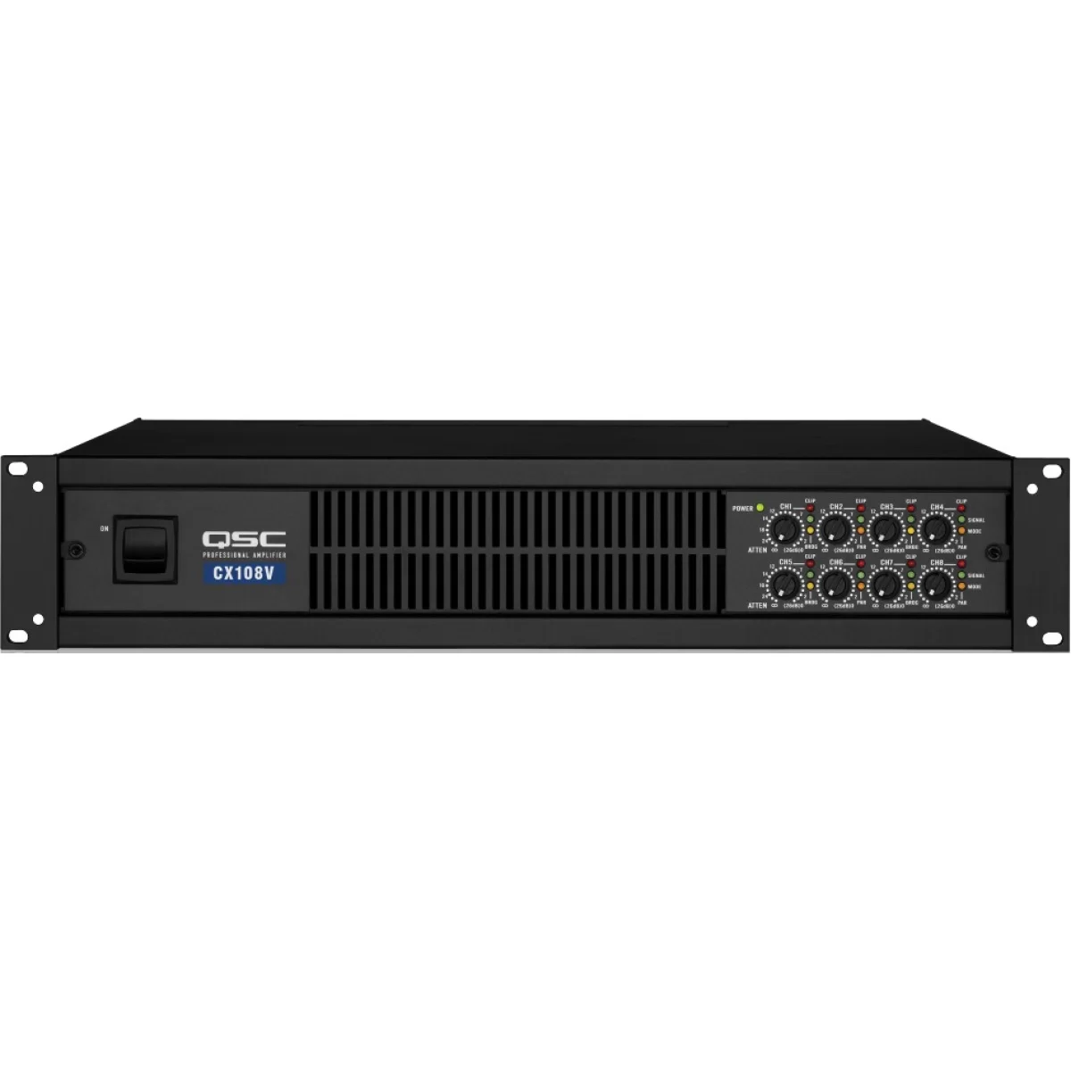 QSC CX108V – Это профессиональный восьмиканальный рэковый усилитель мощности класса AB+B из серии СХ от компании QSC (высота – 2U). Он обеспечивает высокий уровень звука для профессиональных АС и может быть использован в турах, при озвучивании концертов, а также в постоянных и временных инсталляциях.