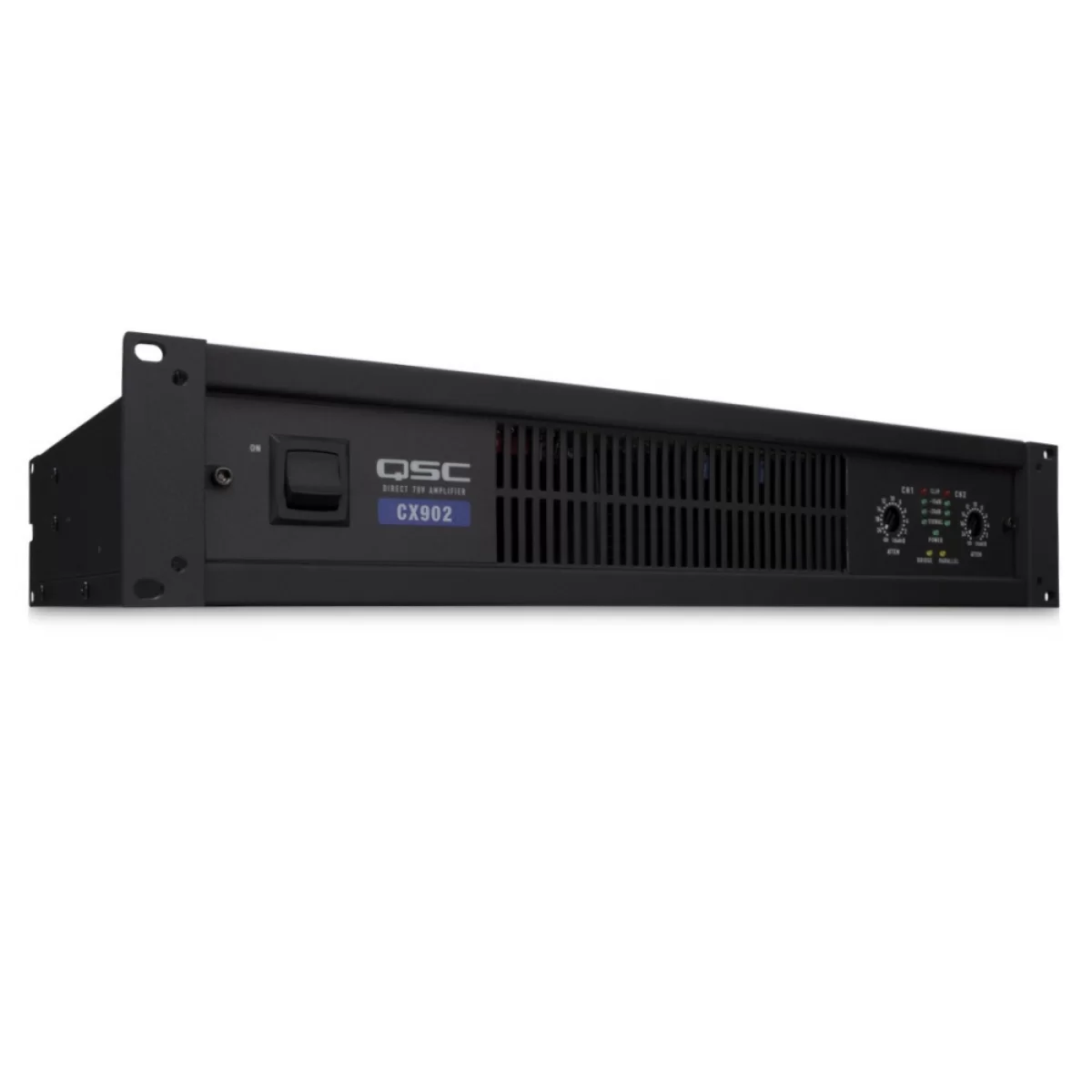 QSC CX902 – Это профессиональный двухканальный рэковый усилитель мощности класса H из серии СХ от компании QSC (высота – 2U). Он обеспечивает высокий уровень звука для профессиональных АС и может быть использован в турах, при озвучивании концертов, а также в постоянных и временных инсталляциях.