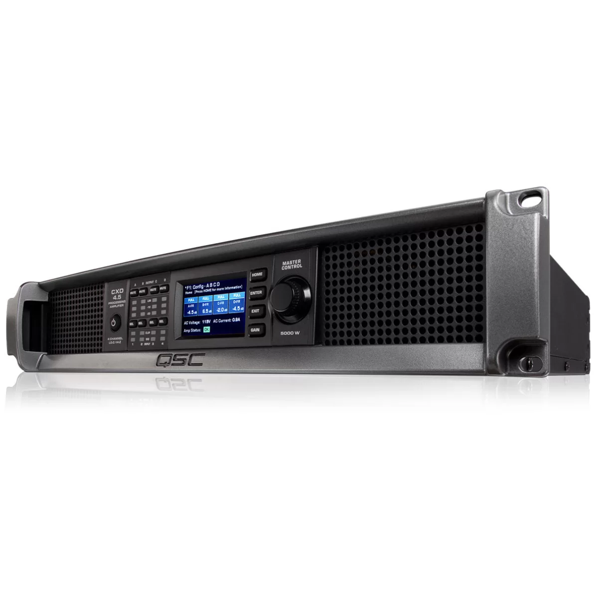 QSC CXD4.5 – Это профессиональный многоканальный усилитель мощности класса D из серии CXD Q от компании QSC (высота – 2U). Он обеспечивает высокий уровень звука для профессиональных АС и может быть использован в студиях, в турах, при озвучивании концертов, а также в постоянных и временных инсталляциях.