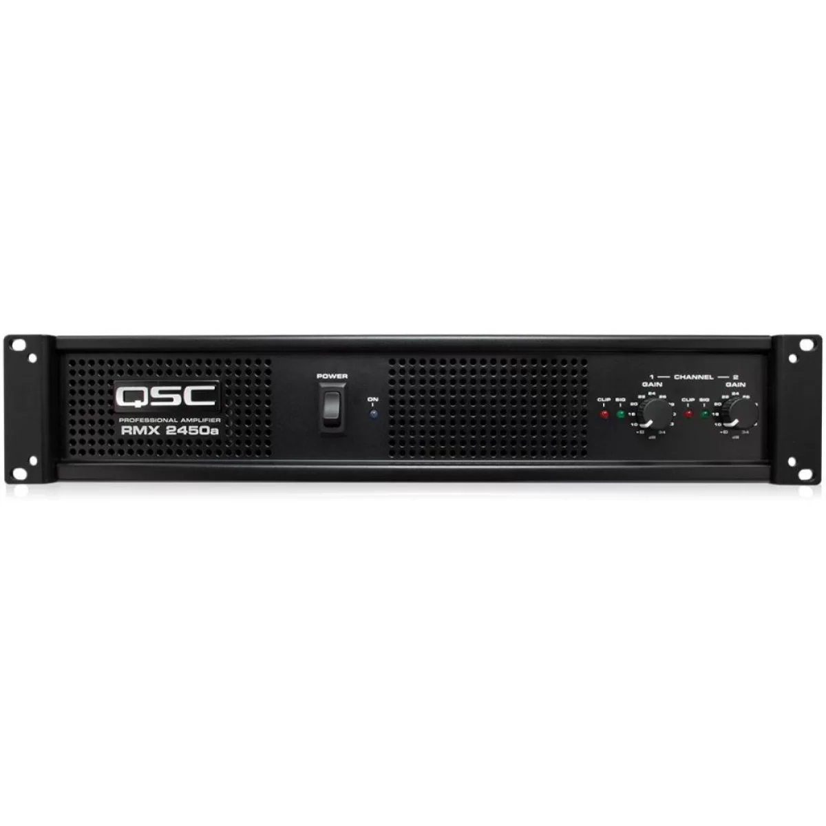 Передняя панель QSC RMX2450 предоставляет доступ к основным регулировкам уровня гейна выходного сигнала на обоих каналах раздельно, а также к светодиодам клиппинга и наличия сигнала, тоже раздельным. Тумблер питания тоже располагается на передней панели слева рядом со светодиодом питания. На передней панели располагаются воздухозаборники: для лучшего охлаждения воздух прогоняется сквозь корпус и выводится наружу с помощью вентилятора на тыловой панели. Транзисторы выходного каскада смонтированы непосредственно на радиаторе для оптимального охлаждения. Для питания используется мощный сильноточный тороидальный трансформатор. В комплементарном выходном каскаде усилителя используются высококачественные элементы, обеспечивающие сверхнизкие искажения и линейную частотную характеристику.