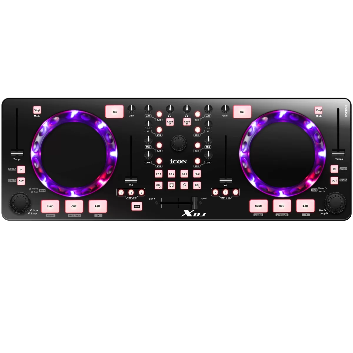 iCON XDJ представляет собой портативный DJ-контроллер с двумя деками, подсветкой органов управления и компактными габаритами.