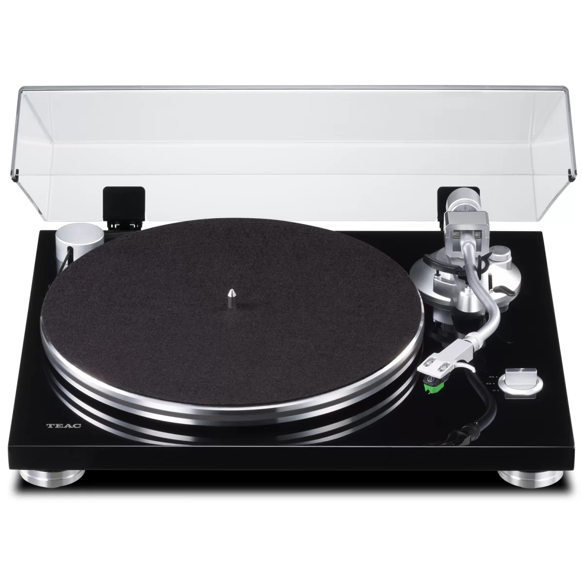 В проигрывателе TEAC TN-3B используется электронное переключение скорости вращения пластинки 33 или 45 об/мин, что наверняка понравится владельцам больших музыкальных коллекций. Опорный диск в данной модели изготовлен из алюминия и обладает значительной массой для сохранения стабильной скорости вращения. Высококлассный S-образный тонарм в TEAC TN-3B изготовлен на заказ знаменитой компанией SAEC и установлен на прецизионном подшипнике. Тонарм имеет все необходимые настройки и оснащен стандартным шеллом, благодаря чему на проигрыватель можно устанавливать самые различные картриджи. В качестве штатной головки на TEAC TN-3B установлен картридж Audio-Technica AT-VM95E.