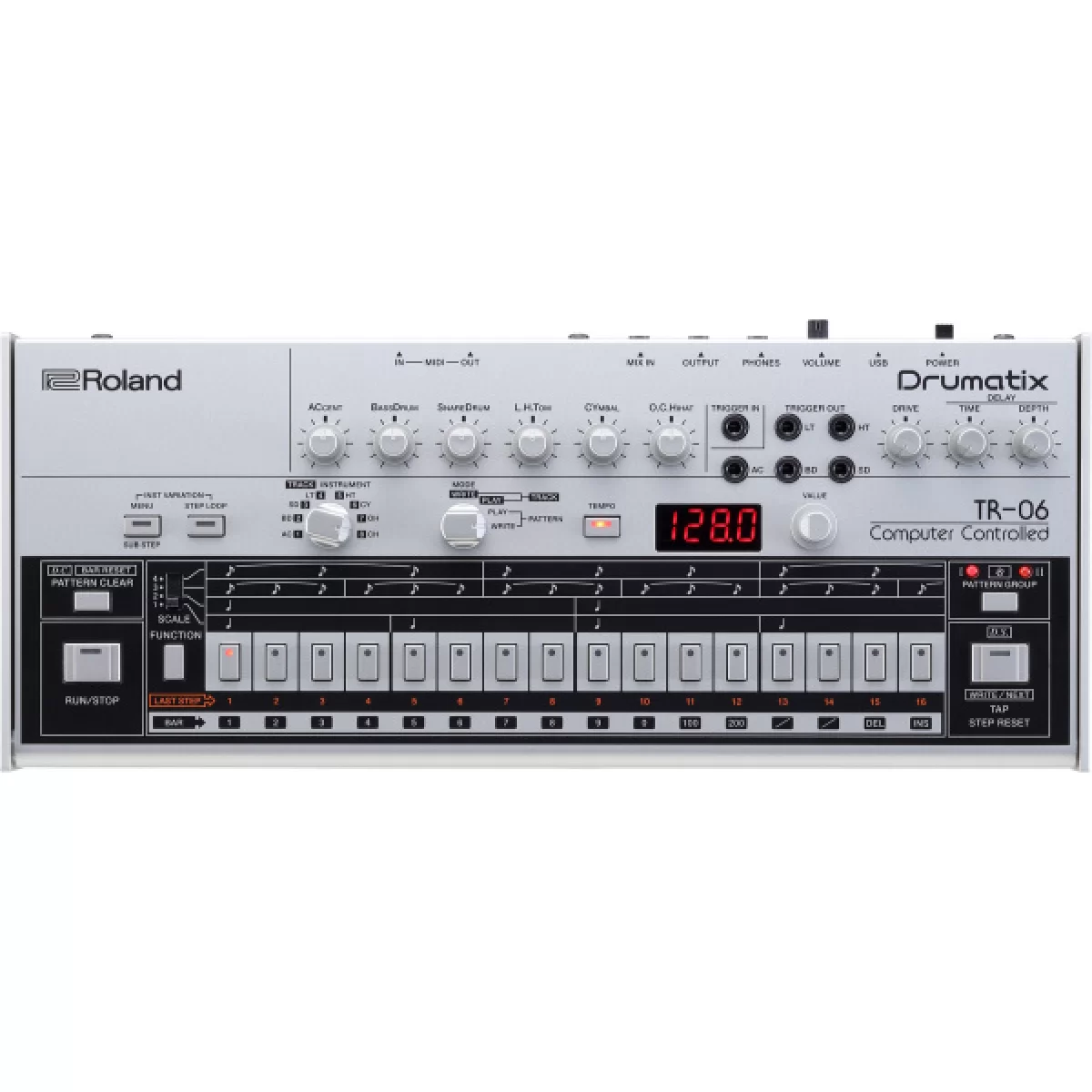 Roland TR-06 ― Копия классической драм-машины Roland TR-606 с некоторыми существенными доработками.