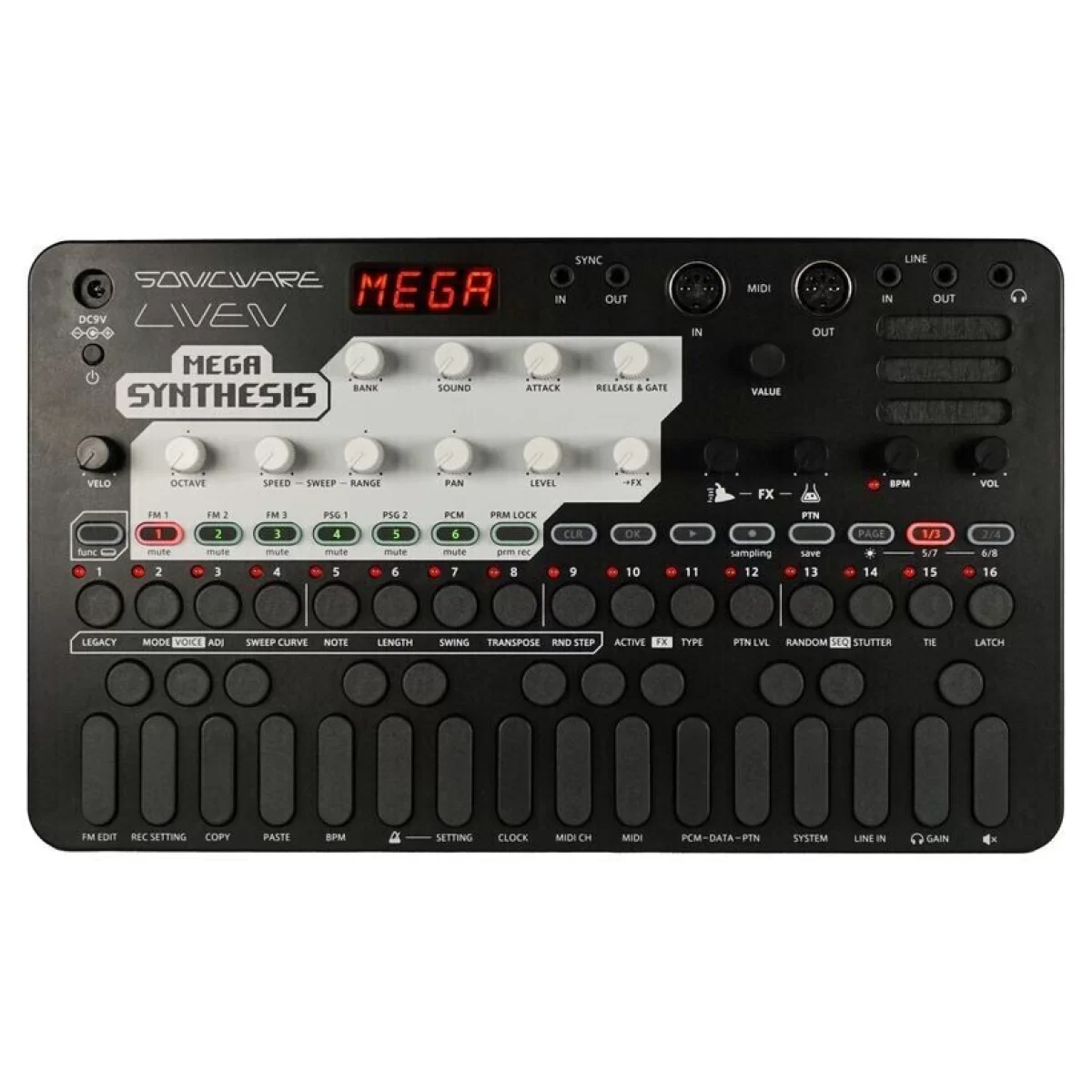 Sonicware Liven Mega - грувбокс в стиле ретро-игр, разработанный совместно с Юзо Косиро и позволяющий полностью воспроизвести легендарный звук первой в мире 16-битной игровой консоли.