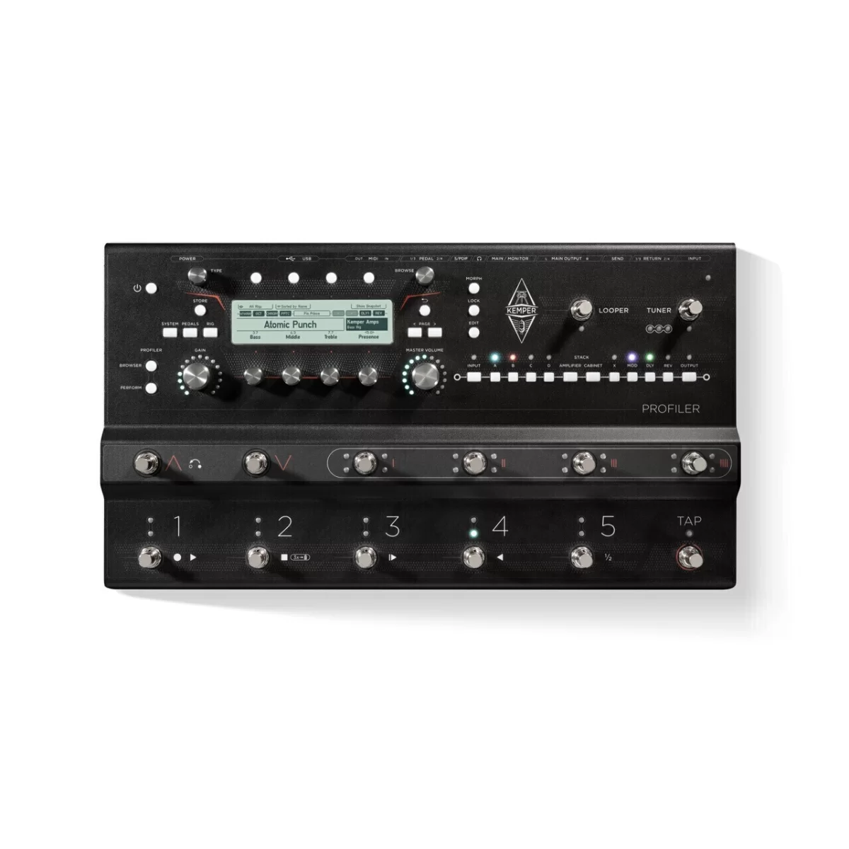 KEMPER PROFILER Stage™ объединяет в себе знаменитый цифровой гитарный усилитель KEMPER PROFILER с контроллером PROFILER Remote™, превращаясь в мощную и удобную напольную станцию.